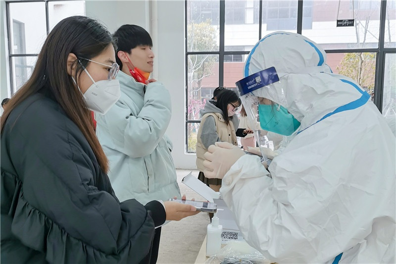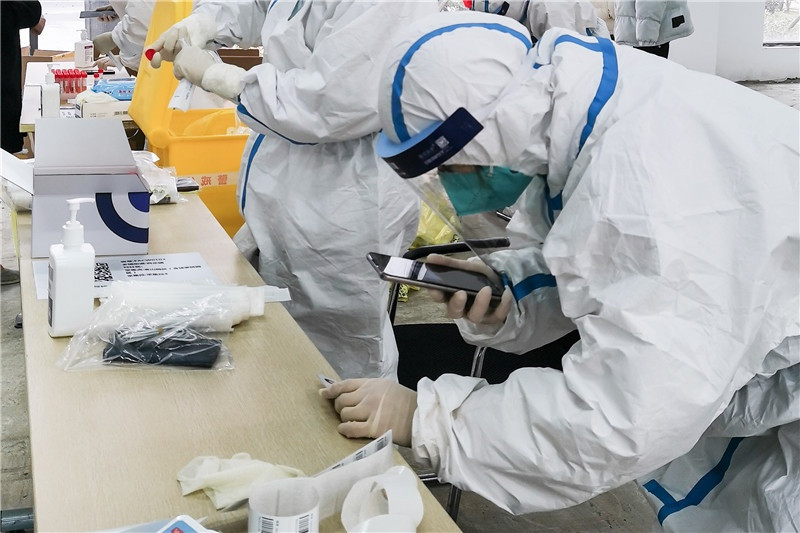 志愿者們在核酸檢測現(xiàn)場進(jìn)行秩序引導(dǎo)、協(xié)助登記等協(xié)助工作。有的為不會使用微信小程序掃碼登記的居民提供指導(dǎo)幫助,有的配合醫(yī)生護(hù)士做好掃碼人員登記,有的協(xié)助特殊人群采樣等等。一米線、隔離帶、測體溫、查雙碼、信息登記,從入口到出口志愿者們幫助居民安排得井然有序,保證了各卡點檢測工作高效進(jìn)行。志愿者表示,“雖然我不是醫(yī)生、護(hù)士,但我應(yīng)該盡自己的綿薄之力,和大家一起打贏這場疫情防控戰(zhàn)!”受倒春寒降溫影響,這天寒風(fēng)刺骨,但是志愿者無一退縮。